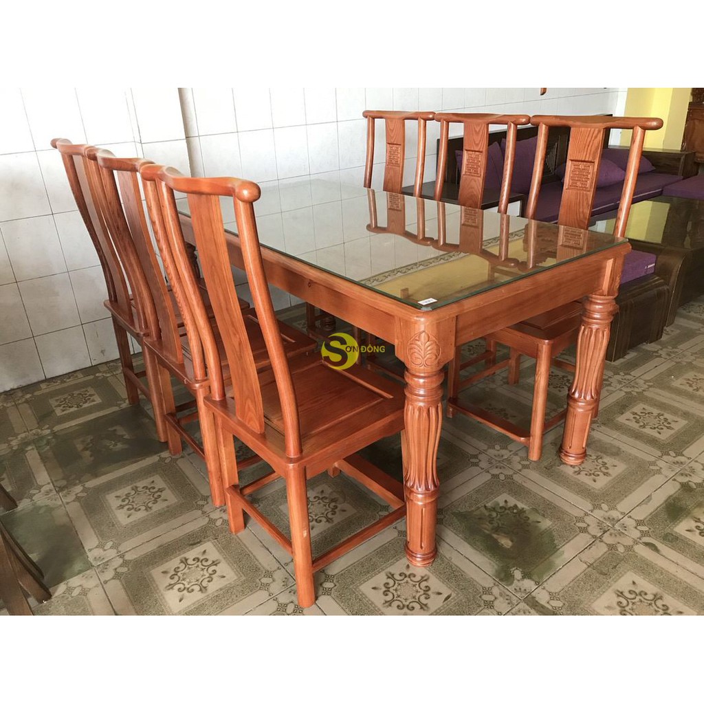 Bộ bàn ăn gỗ sồi nga 6 ghế chữ thọ bàn vuông CTSXBG-yEu